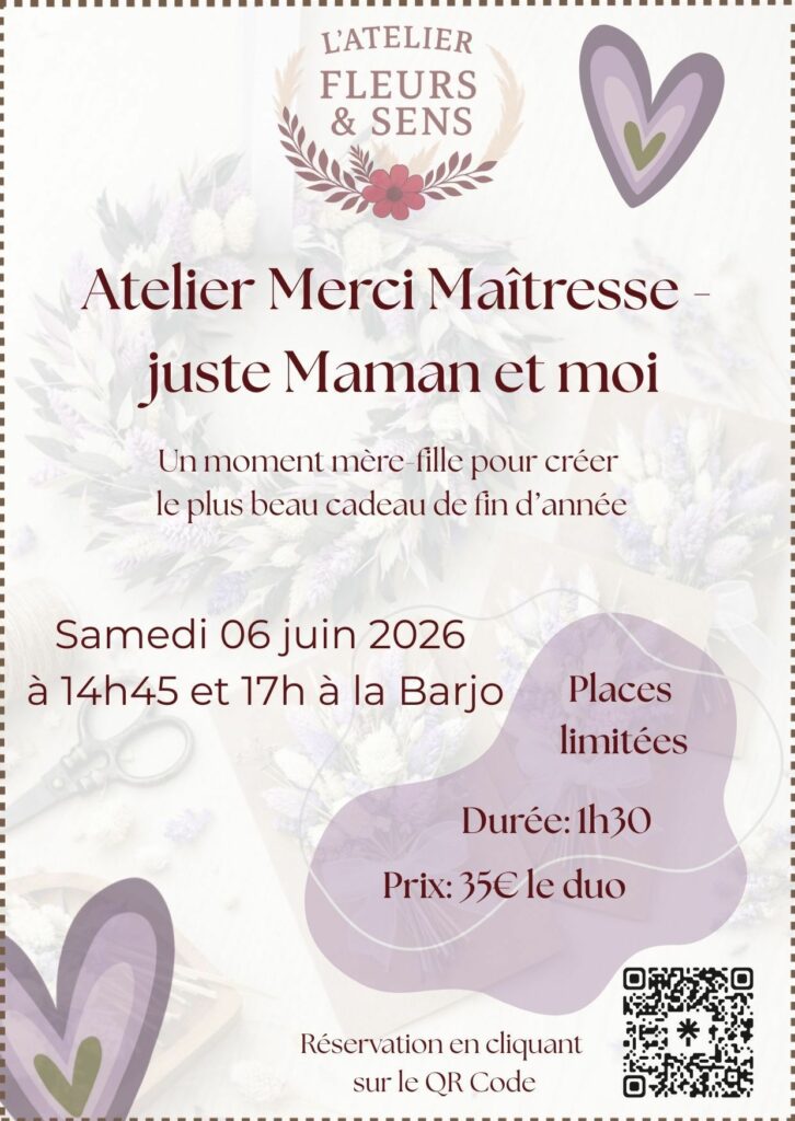 Atelier d’art floral avec Elodie de L’Atelier Fleur & Sens ! un moment mère fille inoubliable. 33 € le duo pour les adhérents